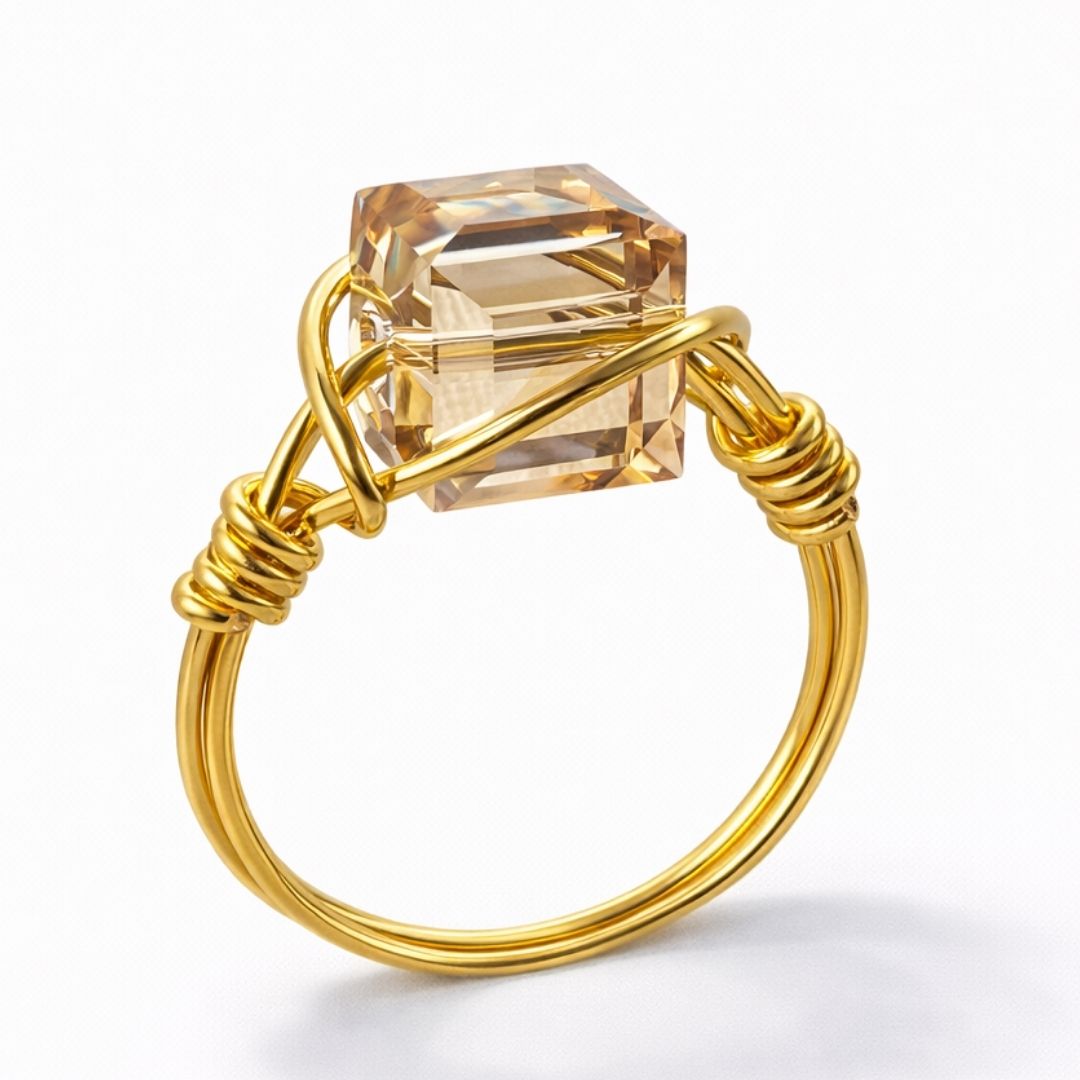 Banhado a ouro com cristal austríaco Golden Shadow, em tom champagne-dourado que reflete o brilho suave do sol.