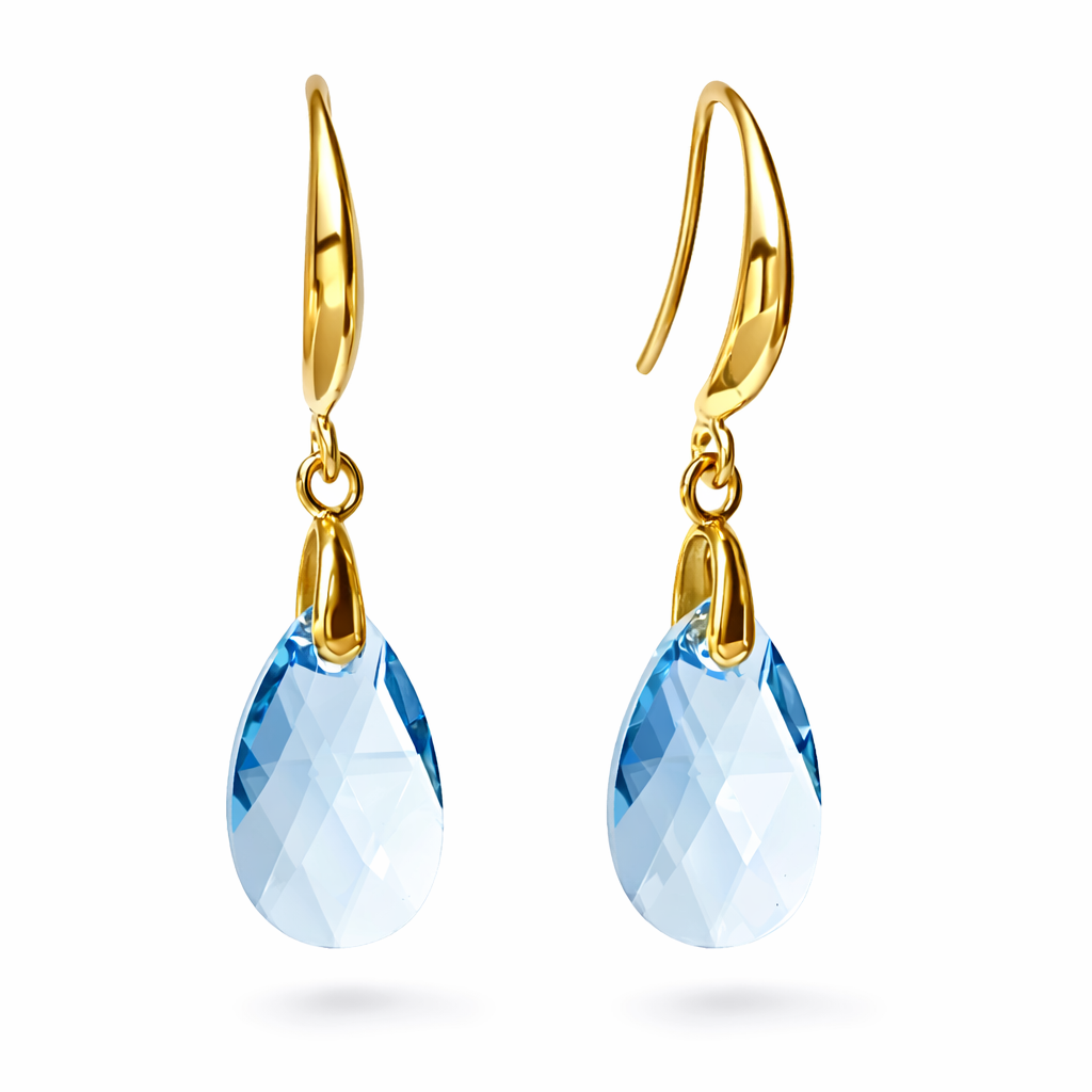 Materiais: brincos banhados a ouro 18k e cristal austríaco aquamarine