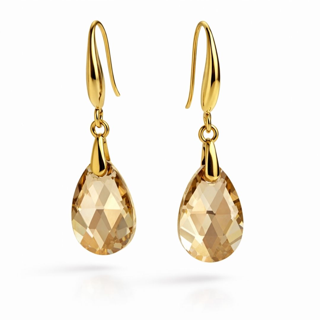 Brincos banhados a ouro 18k com cristal austríaco legítimo na cor Golden Shadow, lapidação gota de 16 mm.