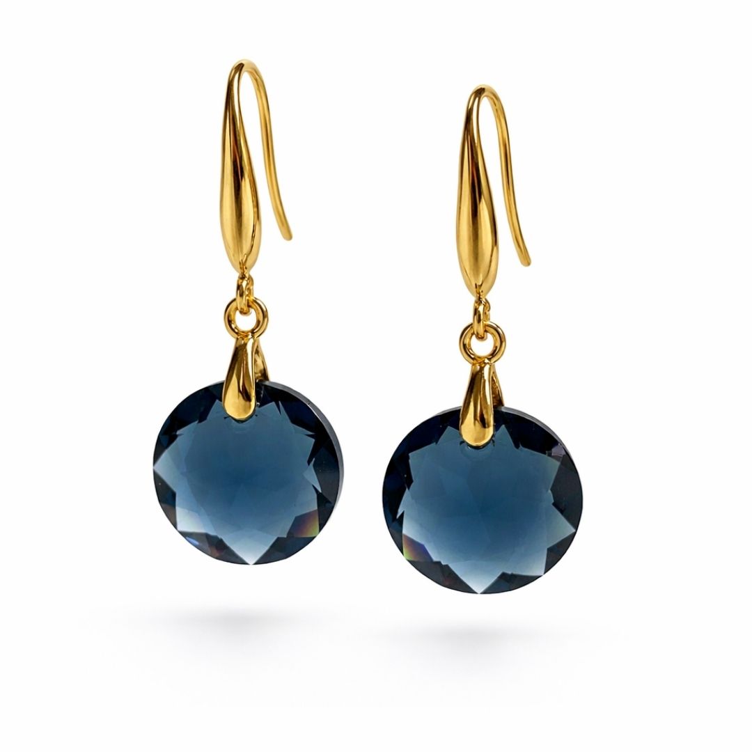 Os brincos Strahlen, da coleção Kristallwelten, revelam a força e a profundidade do cristal austríaco na cor Montana — um azul intenso, fechado e sofisticado, inspirado nos tons profundos do céu noturno e das águas frias alpinas.